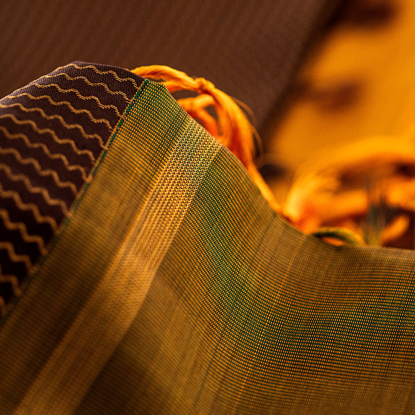 The weave of a Kanjivaram silk saree is what makes it so luxurious and durable! Crafted using a double-warp and double-weft technique, each saree is woven to be strong while keeping its softness and shine. This intricate weaving style brings out the saree’s stunning colors and rich texture, making it truly one-of-a-kind.