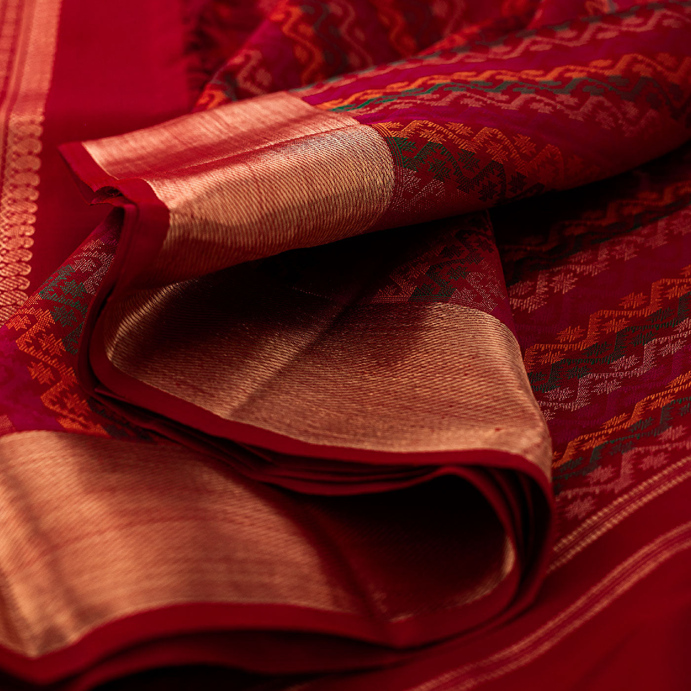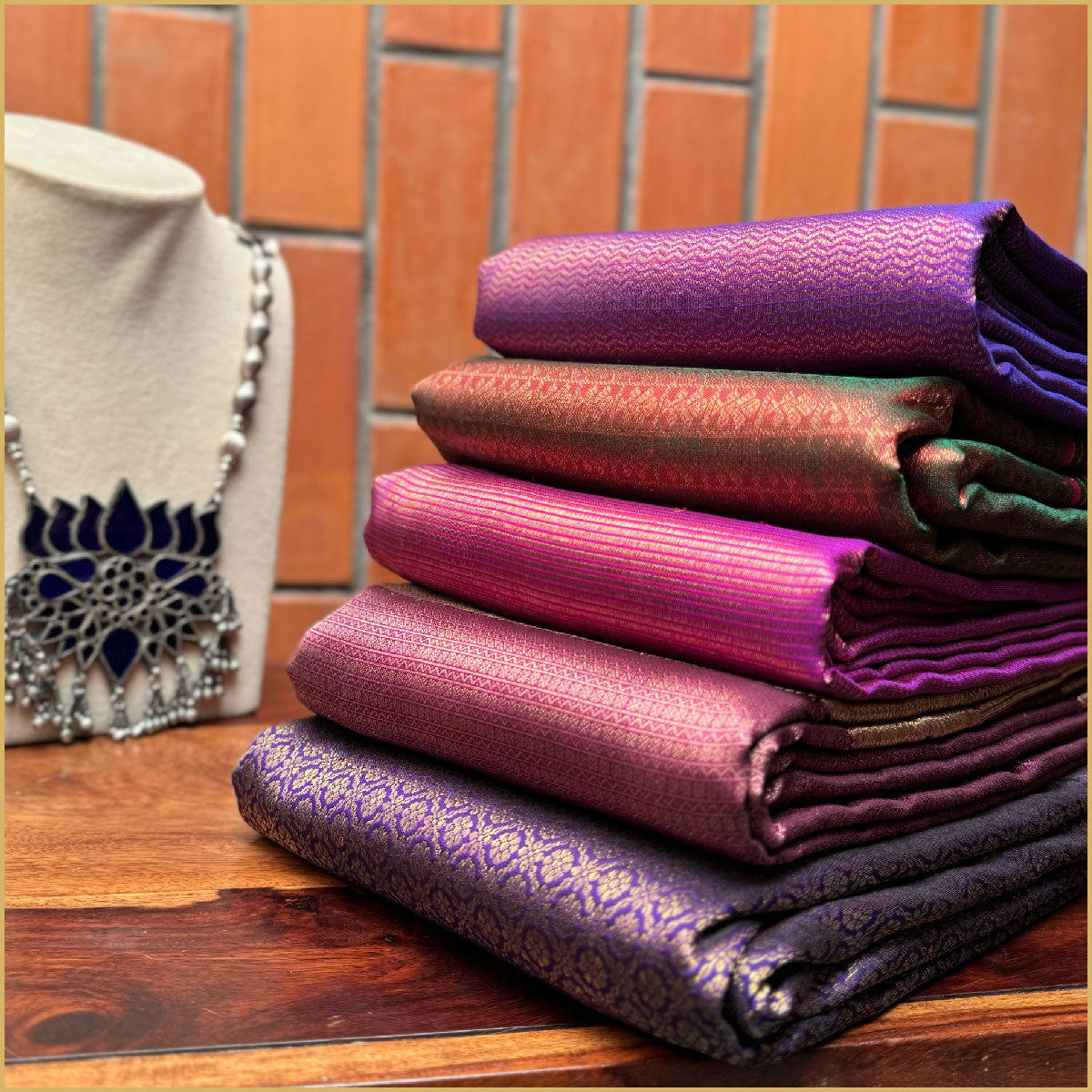 Known for it rich, vibrant colours that come from high-quality silk and skilled dyeing techniques. The unique two-tone effect in each saree gives it a beautiful, shimmery look that changes with the light. These colours aren’t just beautiful - they carry the charm and heritage of Indian tradition!