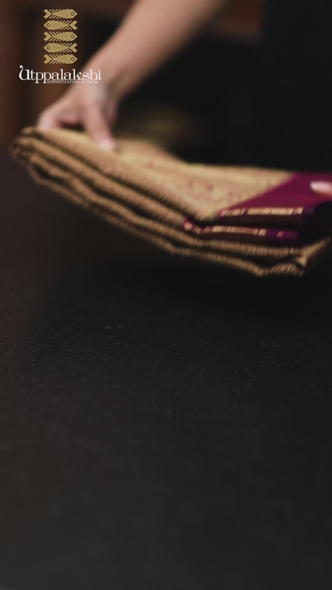 Woven exclusively on Utppalakshi’s loom, this deep purplish wine Kanchipuram silk features a signature long pallu — a 2-metre stretch of luminous zari, carrying Annam motifs across both pallu and borders. The mythical bird, symbol of discernment and grace, appears like a blessing across a night-sky weave. Crafted for those who know that elegance is not in excess, but in the way you arrive — quietly unforgettable.