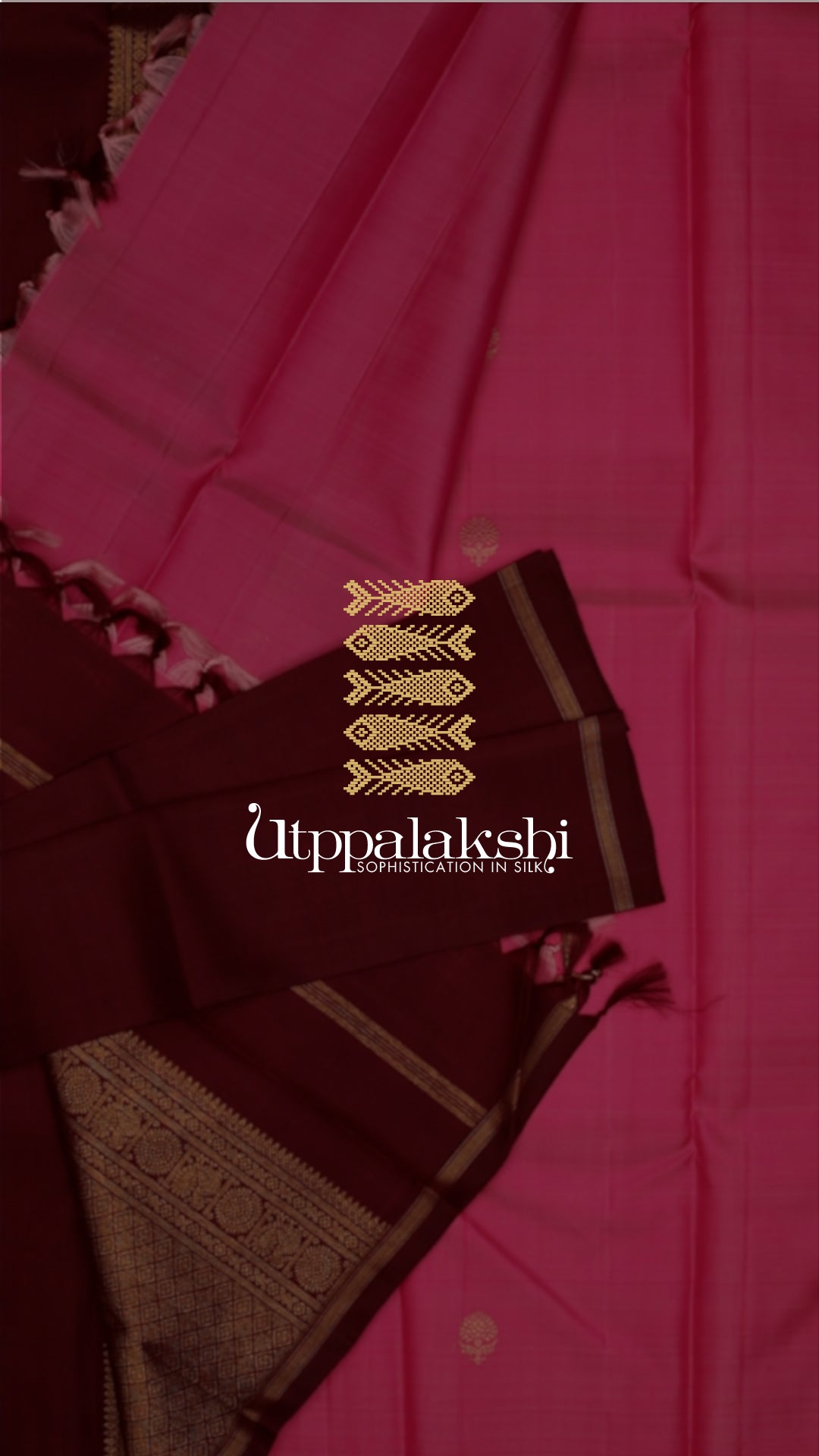 CANDY PINK WITH COFFEE BROWN PALLU || UTPPALAKSHI HANDWOVEN KANJIVARAM SILK SAREE