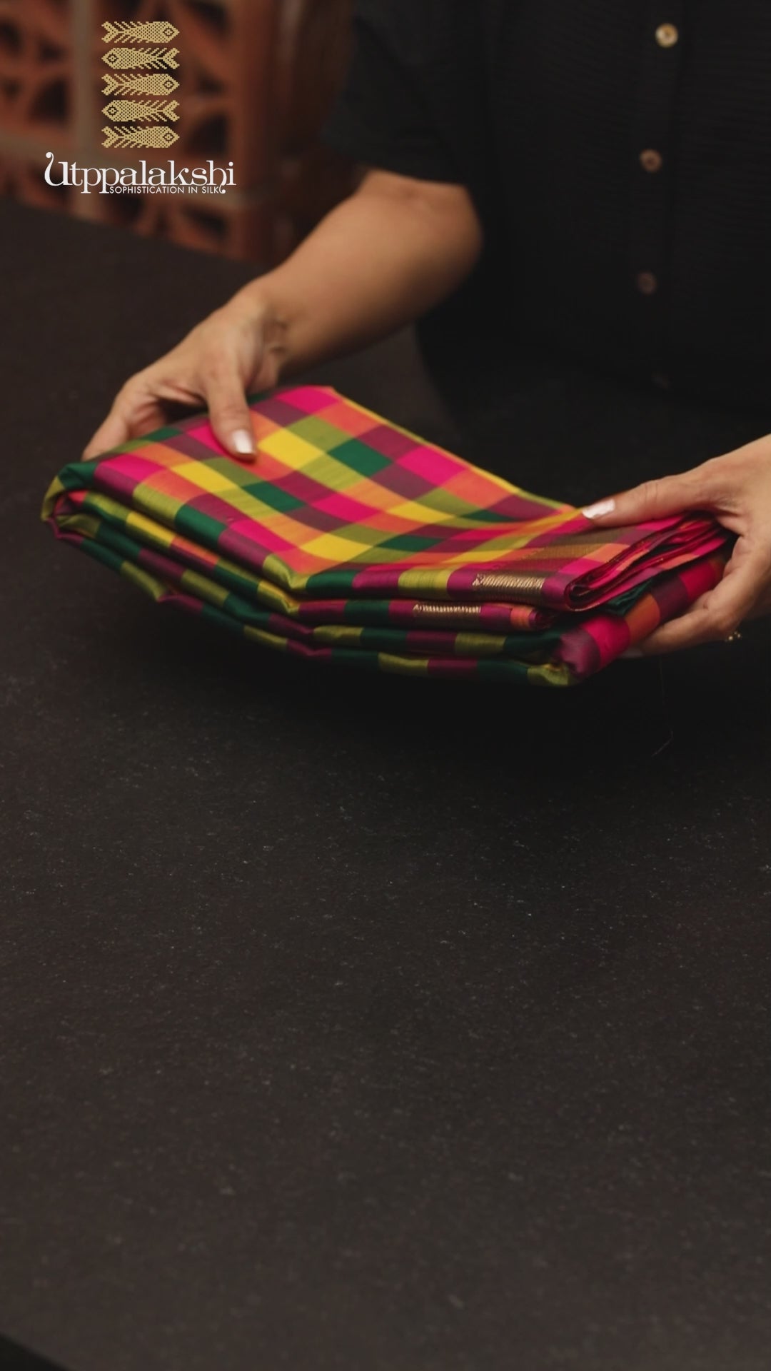 UTPPALAKSHI HANDWOVEN KANJIVARAM SILK SAREE PALUM PAZHAM CHECKS