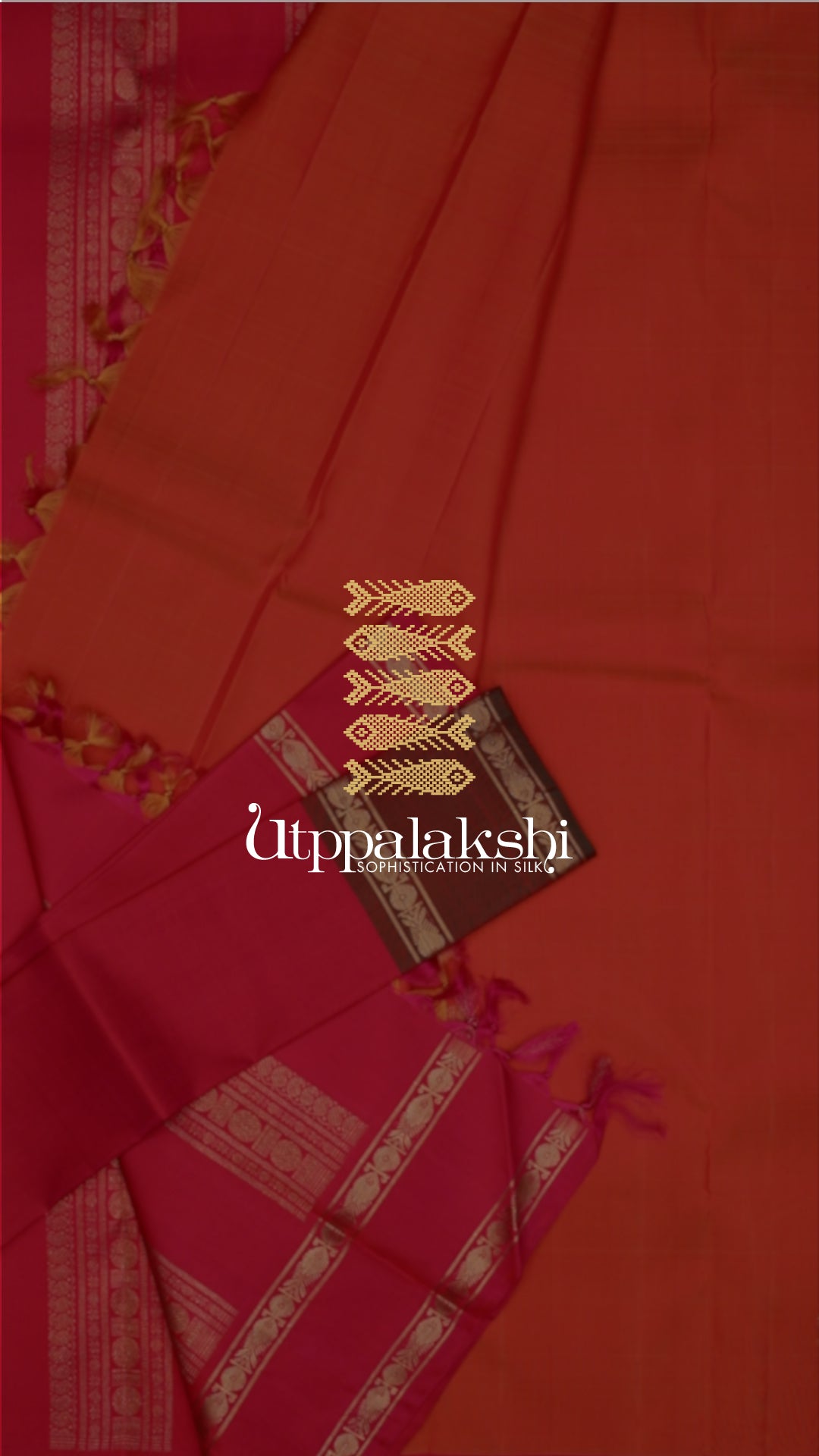GANGA JAMUNA ORANGE PINK MANDULIR || UTPPALAKSHI HANDWOVEN KANJIVARAM SILK SAREE