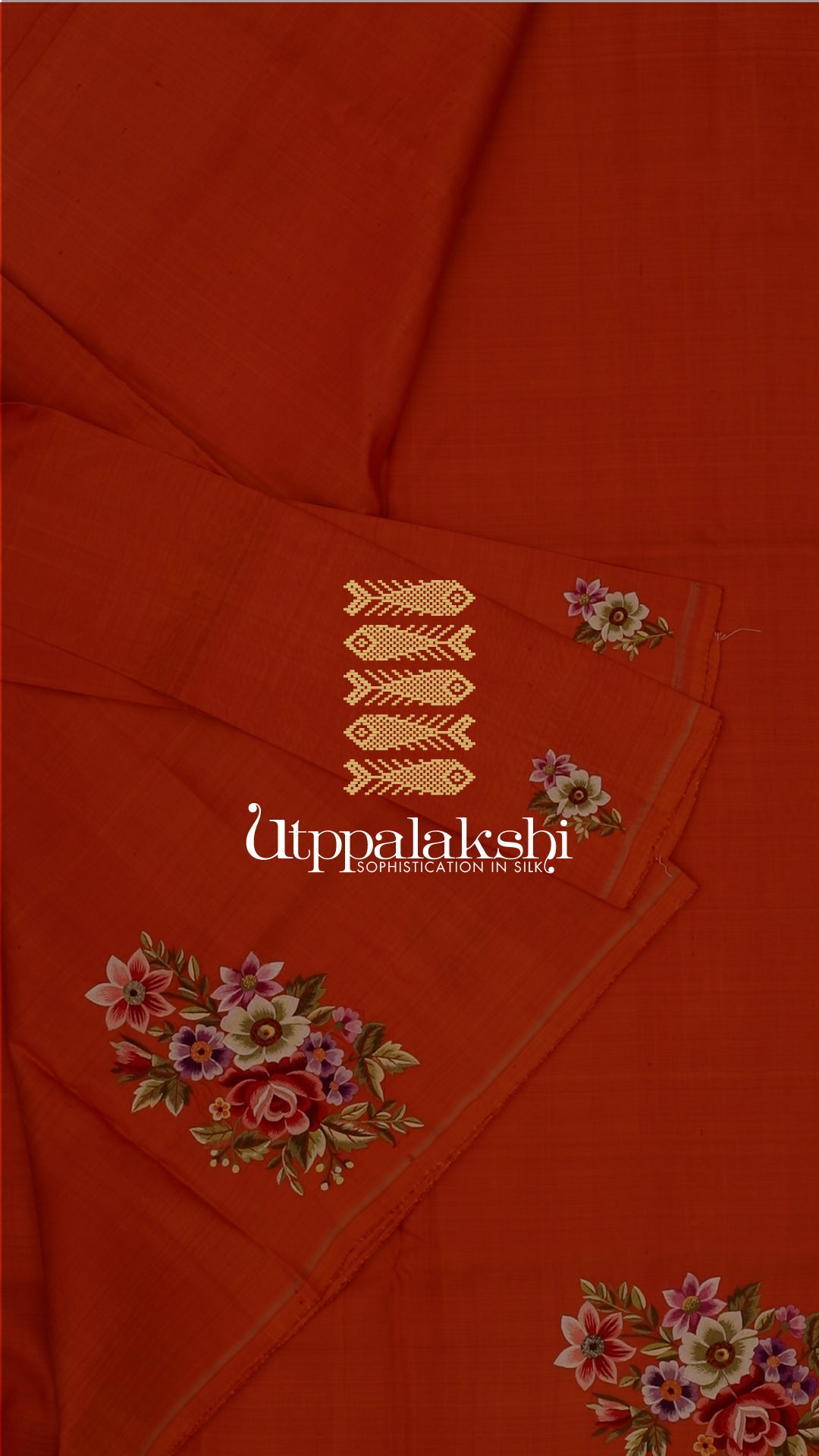 HAND EMBROIDERED SAREE ORANGE MULTICOLOUR EMBROIDERED FLOWERS || UTPPALAKSHI HANDWOVEN KANJIVARAM SILK