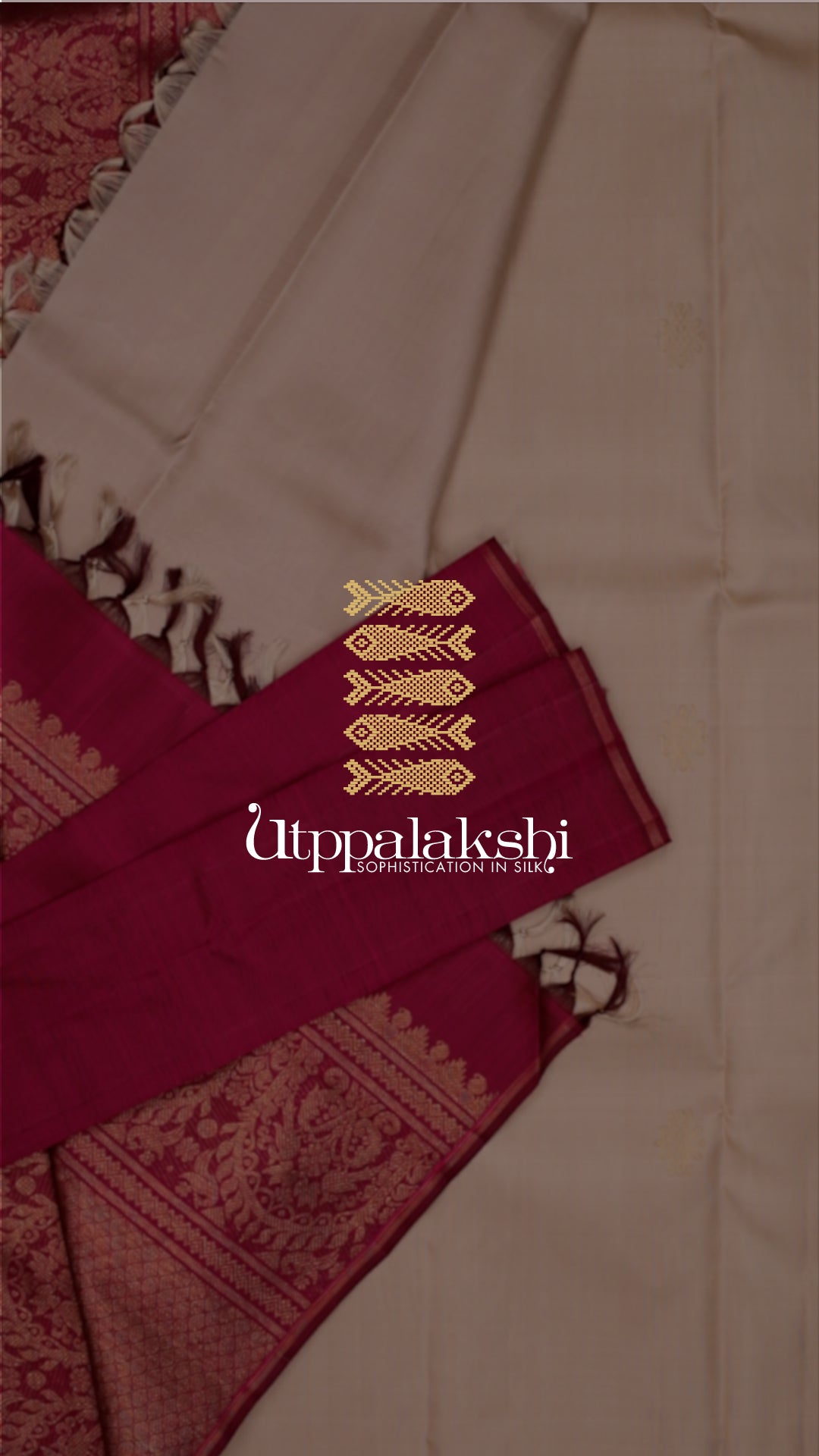 IVORY AND MAGENTA KOLAM SAREE- UTPPALAKSHI HANDWOVEN KANJIVARAM SILK SAREE