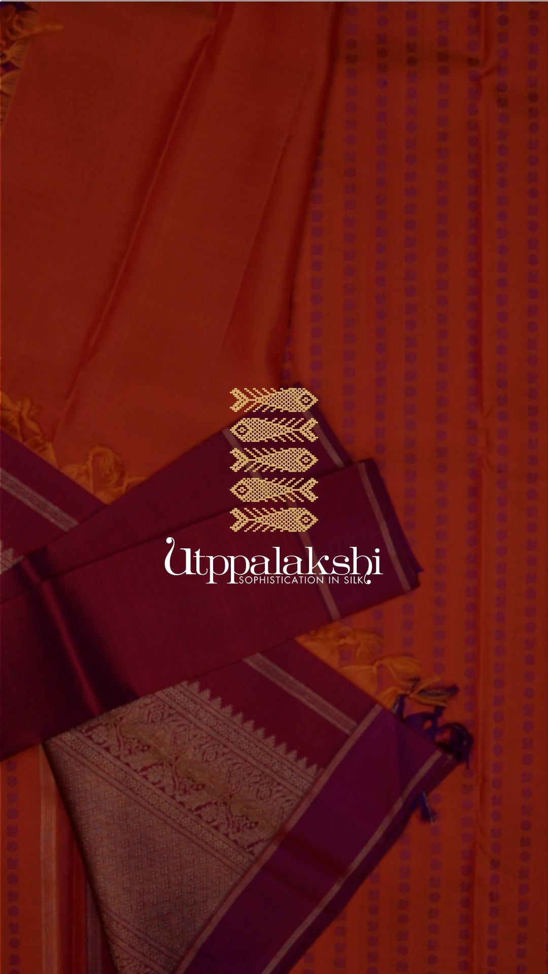 KUMKUM ORANGE AND PURPLE THREADWORK WITH ANNAMS AND CHAKRAMS || UTPPALAKSHI HANDWOVEN KANJIVARAM SILK SAREE