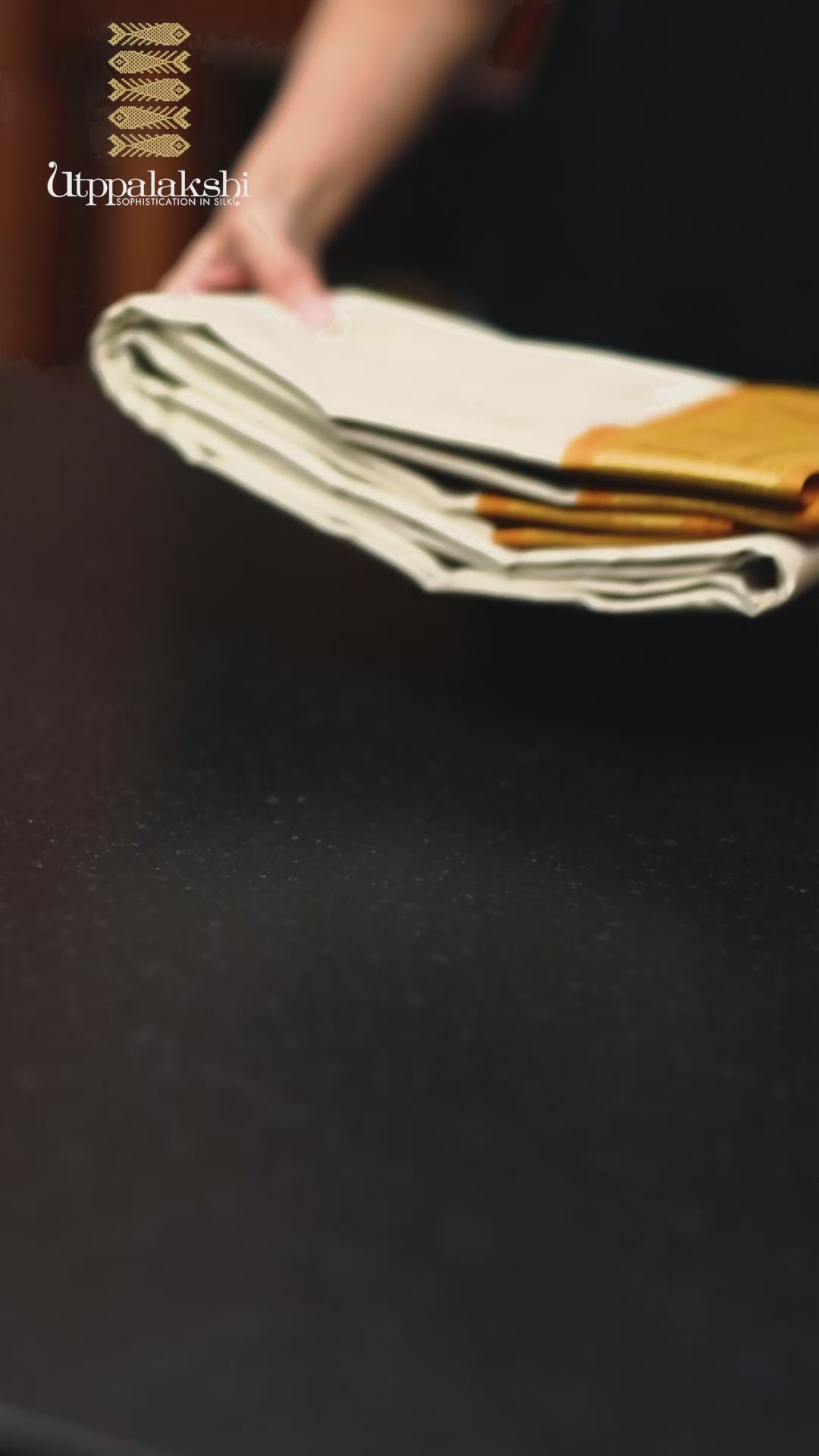 OFF-WHITE WITH FLORAL MOTIF & TURMERIC GEOMETRIC BORDER - AN UTPPALAKSHI HANDWOVEN KANJIVARAM SILK SAREE