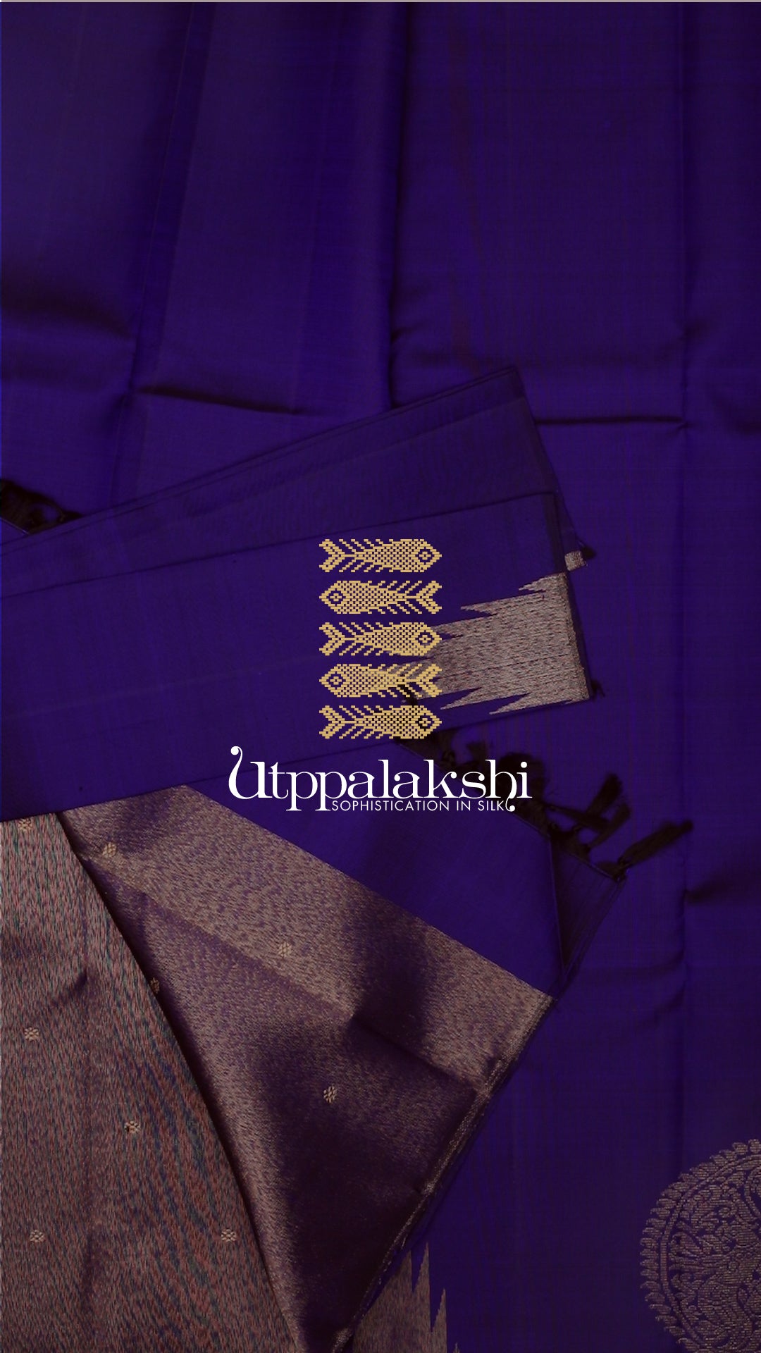 UTPPALAKSHI HANDWOVEN KANJIVARAM SILK SAREE MS BLUE TEMPLE MANGO