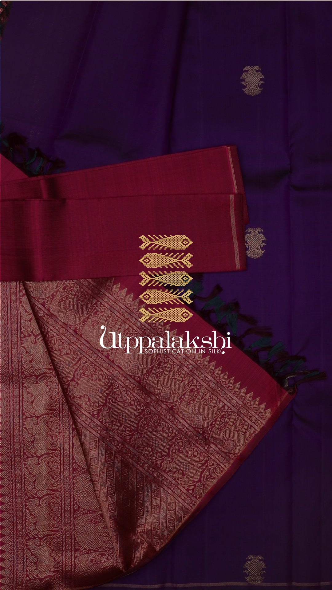 PEACOCK BLUE AND MAGENTA GANDABERUNDA - UTPPALAKSHI HANDWOVEN KANJIVARAM SILK SAREE