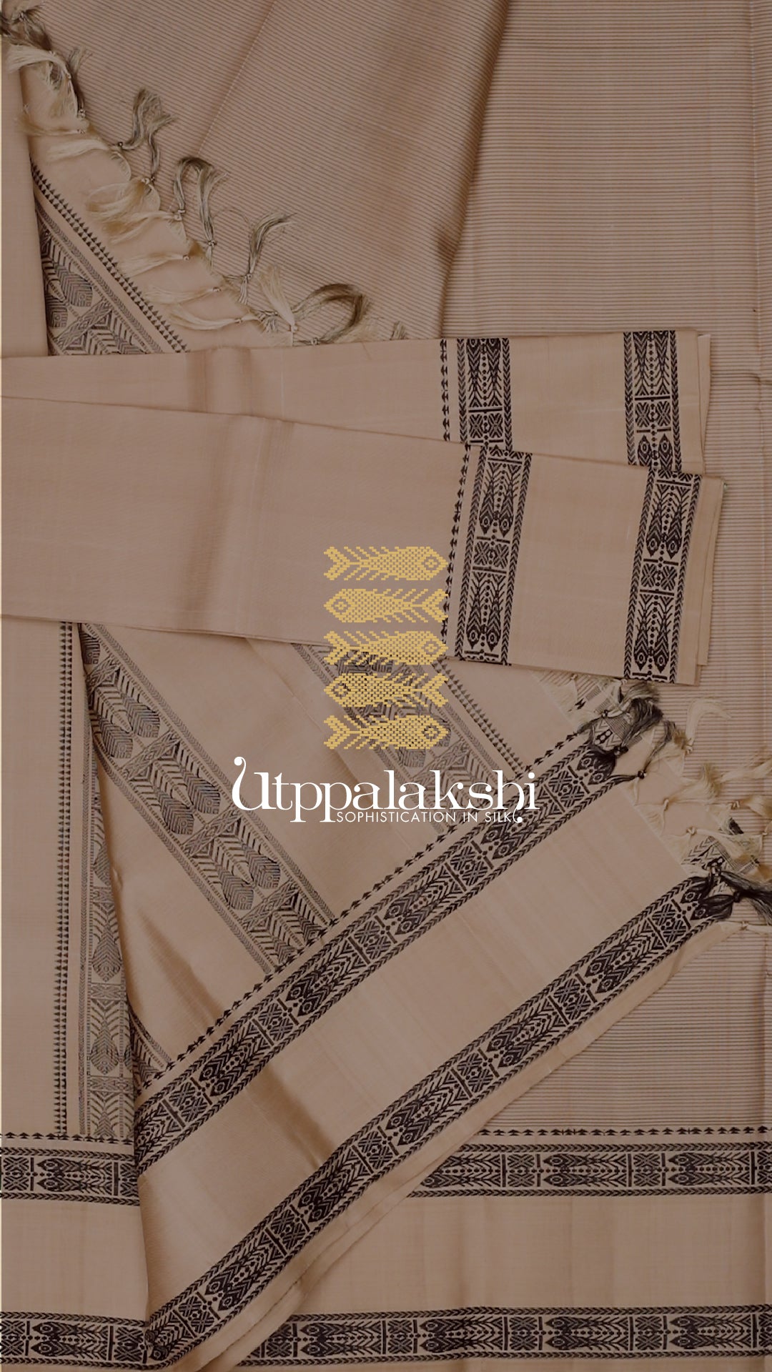 UTPPALAKSHI HANDWOVEN KANJIVARAM SILK SAREE OFFWHITE WITH BLACK LINES AND FISH BORDER