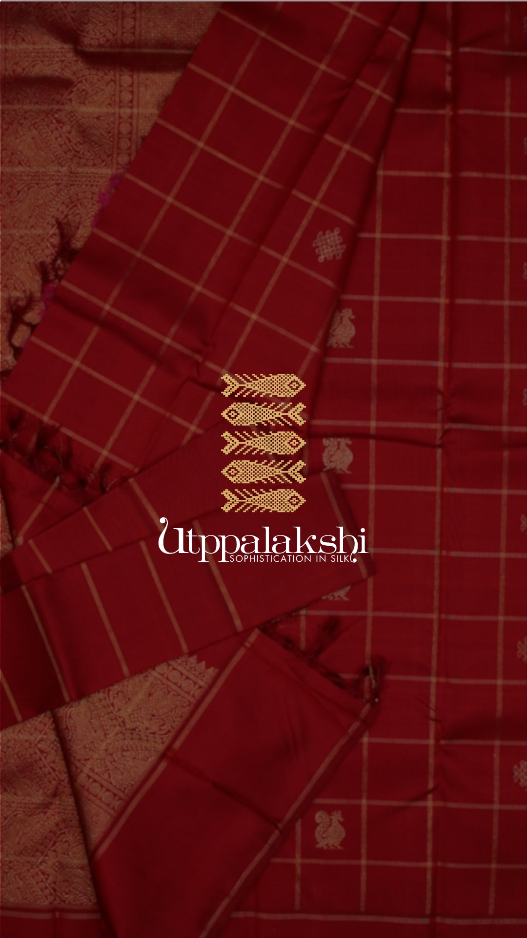RED ANNAM KOLAM CHECKS || UTPPALAKSHI HANDWOVEN KANJIVARAM SILK SAREE