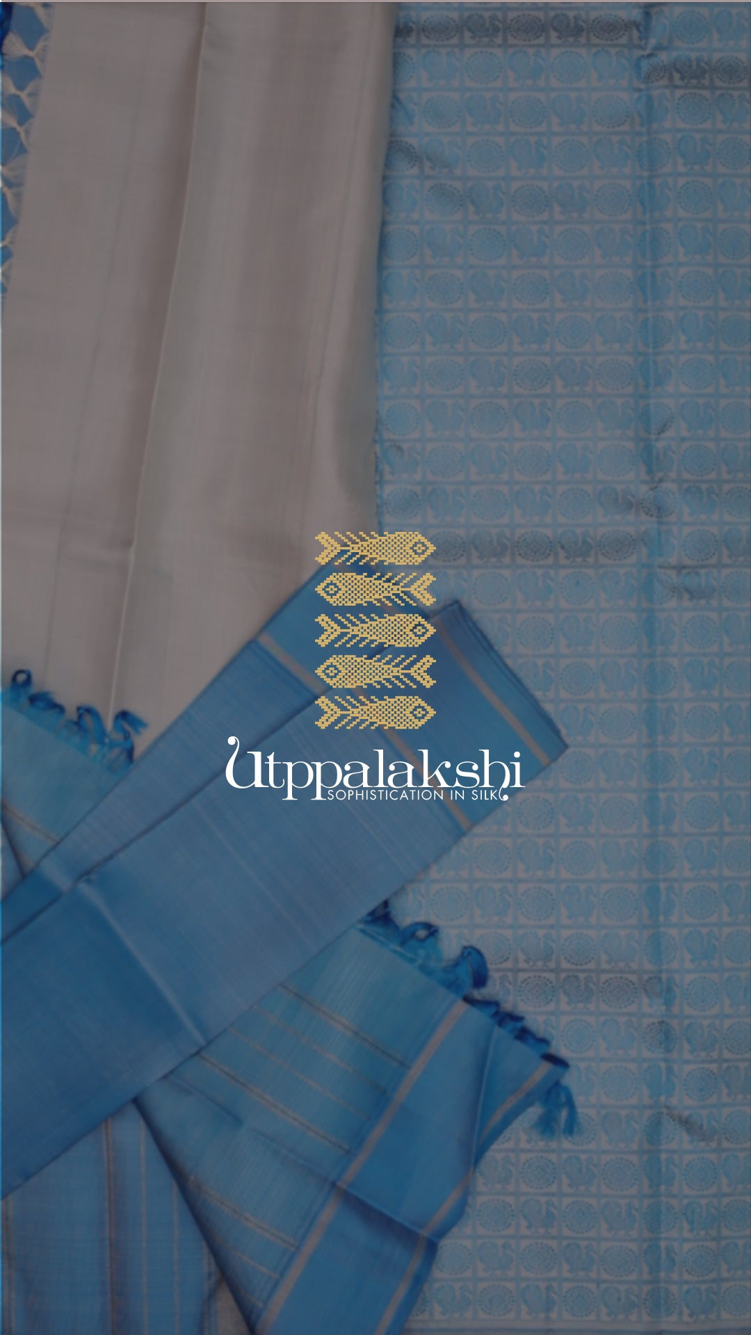 WHITE & BLUE ANNA CHAKRAM || UTPPALAKSHI HANDWOVEN KANJIVARAM THREADWORK SILK SAREE||