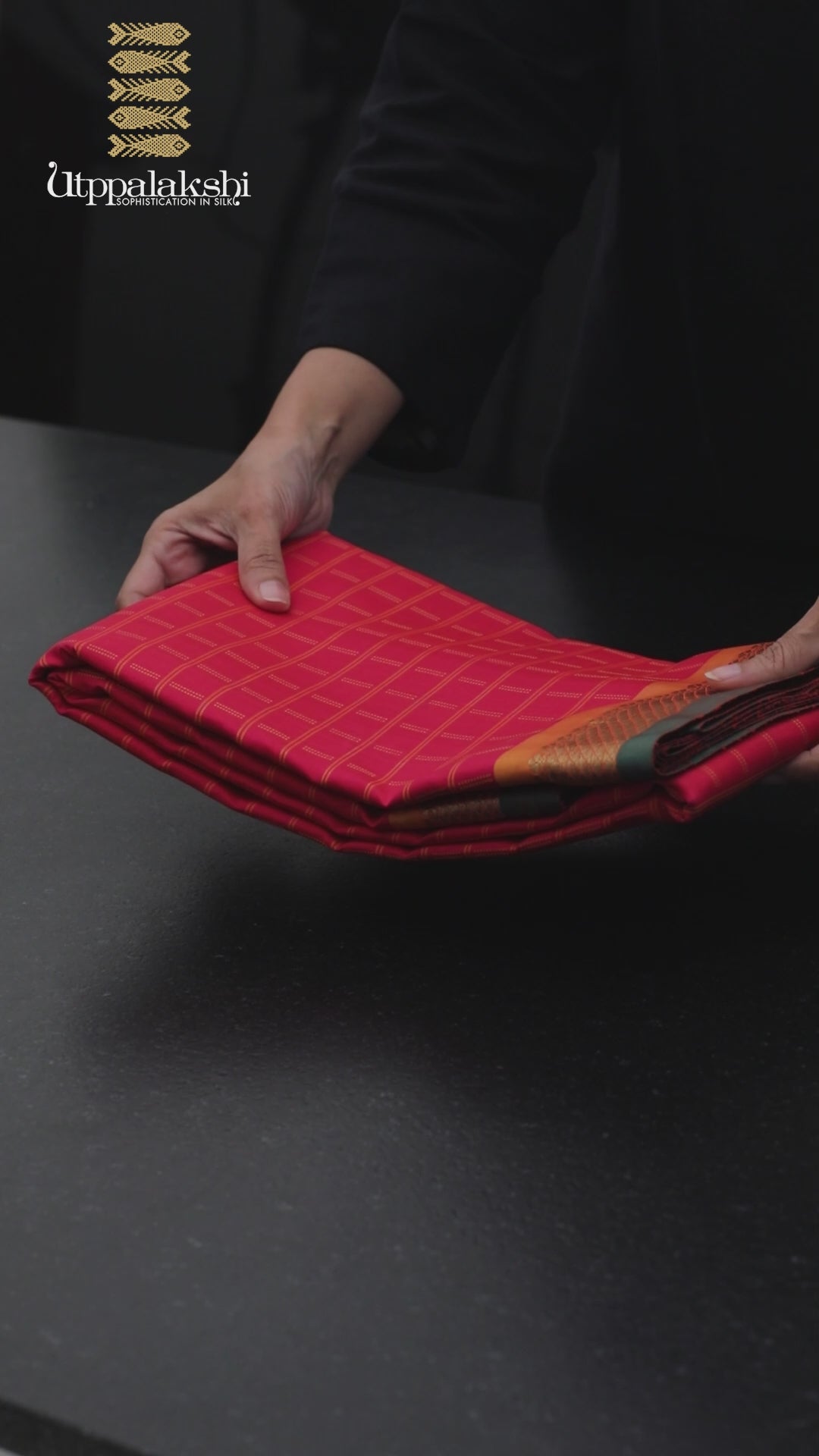 UTPPALAKSHI HANDWOVEN KANJIVARAM SILK SAREE RED MUSTARD CHECKS