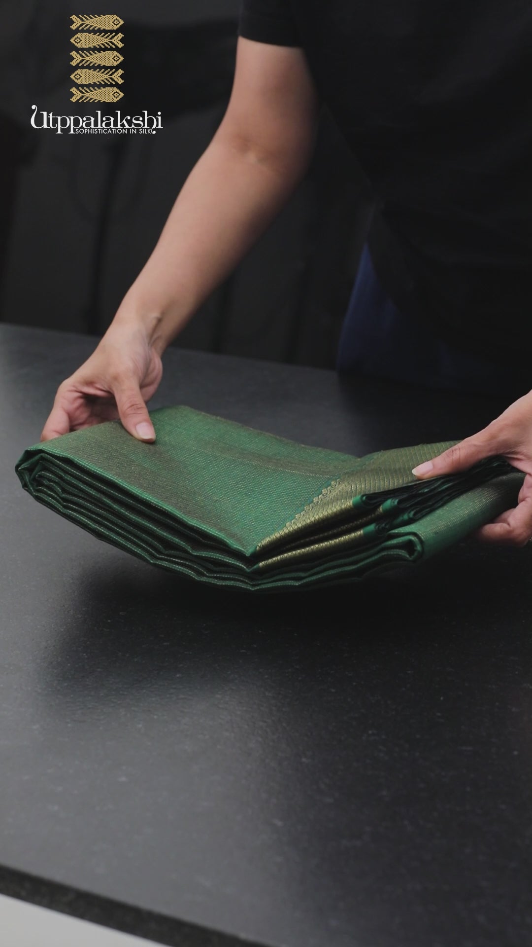 UTPPALAKSHI HANDWOVEN KANJIVARAM SILK BRIDAL SAREE GREEN VAIRA OOSI