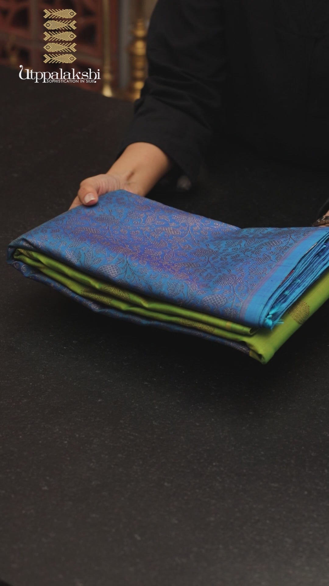 UTPPALAKSHI HANDWOVEN KANJIVARAM SILK HALF AND HALF SAREE GREEN AND BLUE