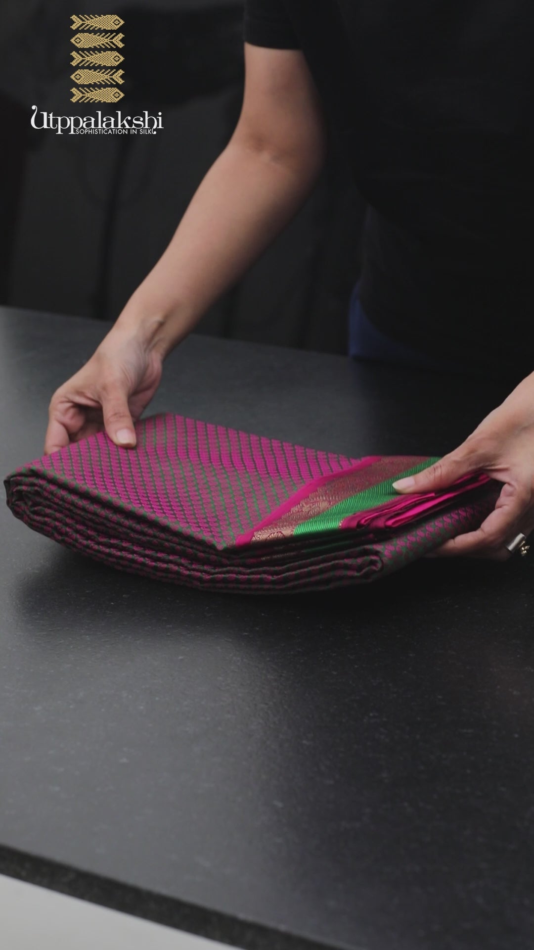 UTPPALAKSHI HANDWOVEN KANJIVARAM SILK JACQUARD SAREE PURPLE PINK GREEN MANGO BUTTA